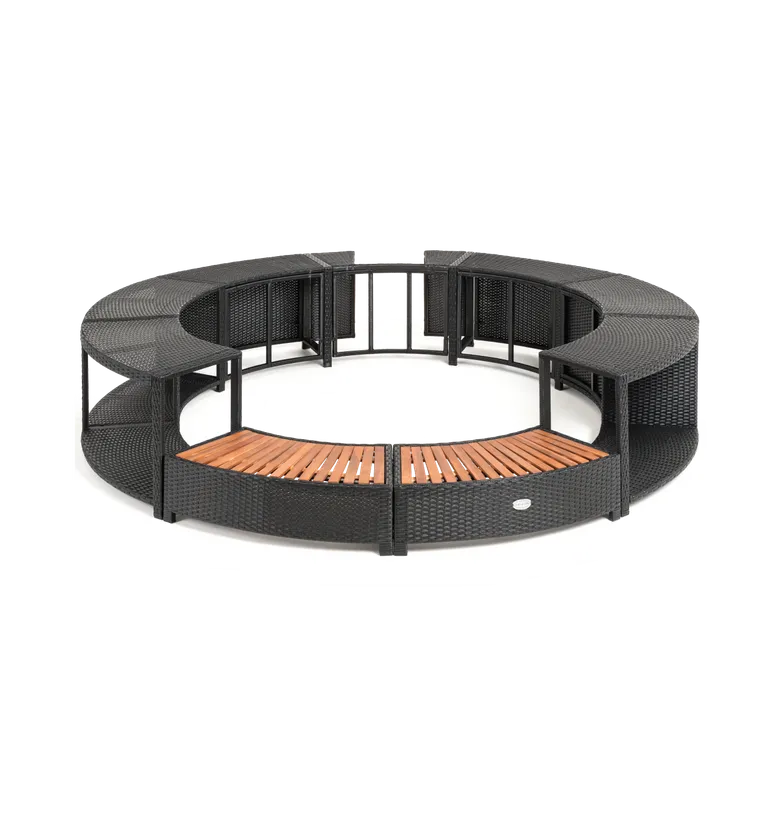 L’habillage pour spa est la solution parfaite pour à la fois protéger et donner du cachet à votre spa rond Bestway. C’est pourquoi Bestway a conçu sa propre gamme d’entourage en rotin pour équiper les spas de la gamme Lay-Z Spa. Afin de rajouter une touche d’authenticité à votre coin spa gonflable, l’entourage en rotin noir pour spas ronds sera parfait. Fabriqué en résine tressée, ce dernier comporte également un marchepied en bois pour améliorer l’accesssibilité du jacuzzi gonflable. Ce dernier est conçu pour recouvrir le pourtour de votre spa privatif afin de le protéger en intégralité. Outre l’aspect protection, l’habillage pour spas Bestway servira également d’élément de décoration et de meuble de rangement. En effet, l’entourage possède des rangements pour y abriter vos affaires (lunettes, téléphone, livre) durant votre séance de balnéothérapie.